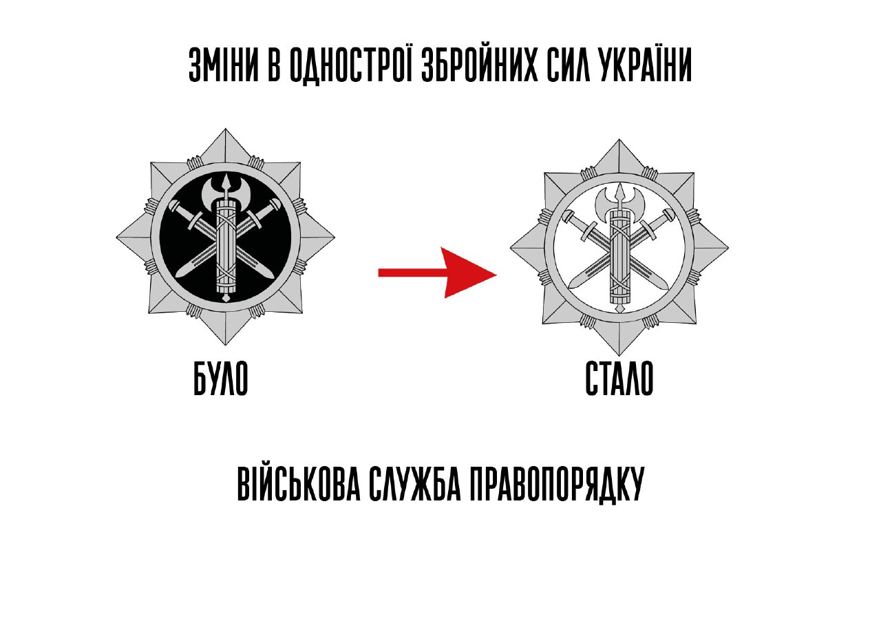 Также изменились некоторые беретные знаки - изменился беретный знак радиотехнических войск и войск связи, военных правоохранителей, морских пехотинцев и Государственной специальной службы транспорта Украины.