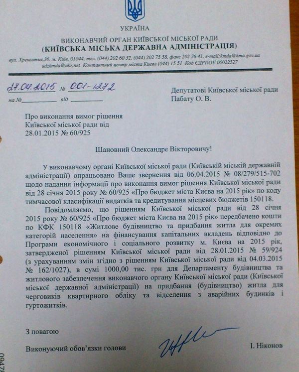 По словам Александра Пабата, перспективы киевлян-участников АТО на получение бесплатного жилья от КГГА хорошо иллюстрируют следующие цифры. По состоянию на 1 марта 2015 года, в очереди на получение жилья в столице пребывают 65 590 семей и граждан, а горбюджетом Киева на приобретение (строительство) жилья для очередников и отселенных из домов/общежитий, пребывающих в аварийном состоянии граждан в 2015 году выделен всего 1 млн грн.