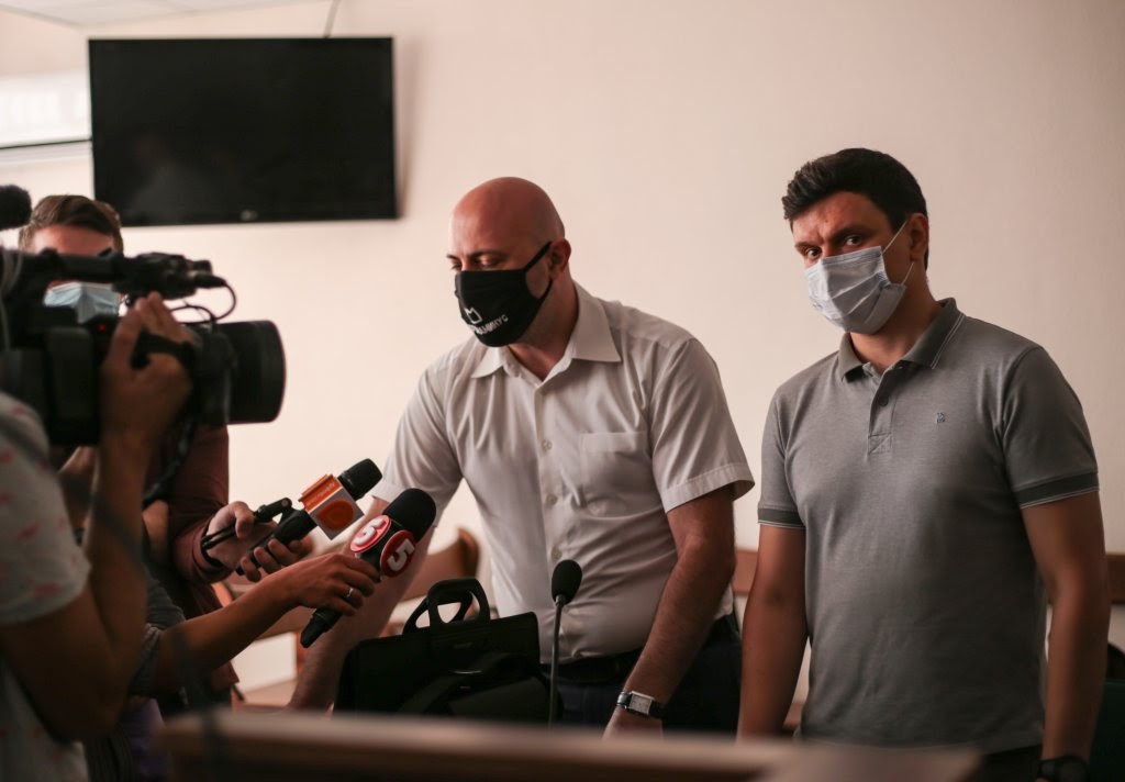 Прокуроры Янис Симонов и Игорь Земсков на заседании в Святошинском райсуде Киева 10 сентября 2020. Фото: Стас Юрченко, Ґрати