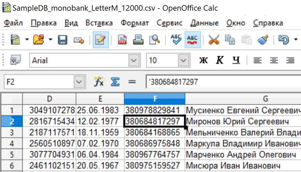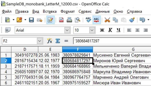 В качестве доказательств утечки прдоставляются скриншоты банковского приложения Монобанк и фрагмент базы данных в размере 12000 записей.