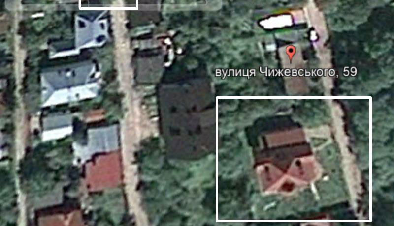 На цій ділянці розташований симпатичний житловий будинок площею 454 квадратні метри. У реєстрі його немає. Відповідно до декларації податківця, будинок належить дружині на праві власності з березня 2014 року. Хоча в гуглі його можна побачити ще з 2005 року, а у 2009 він має вигляд завершеного.