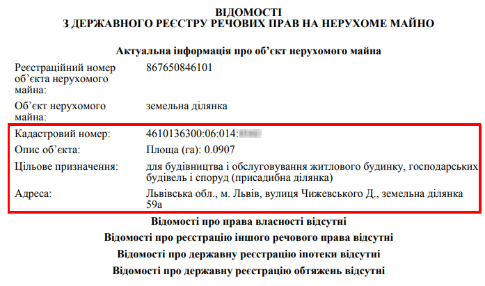 У Сисюк Оксани є ділянка безпосередньо у Львові площею 0,09 га. При цьому власник у реєстрі відсутній взагалі. З ухвали ж сесії Львівської міськради ми маємо підтвердження про власника.