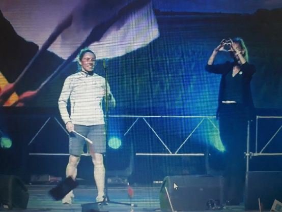 На сцене во время выступления спортсменка легкой атлетики Анастасия Мирончик-Иванова показала фирменный знак Марии Колесниковой (один из лидеров массовых акций) и штаба Виктора Бабарико (один из основных противников Лукашенко на выборах президента Беларуси).