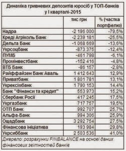 Щодо банків з російським капіталом, які торік були серед лідерів на ринку по відтоку коштів клієнтів, то в І кварталі ситуація була неоднорідна. Так, у банків з російським держкапіталом (ВТБ Банк, Сбербанк Росії та Промінвестбанк) обсяг валютних вкладів бізнесу збільшився (швидше за все, що за рахунок підприємств з російським капіталом або українських компаній, які пов’язані з російським ринком, – ред.). Натомість у приватного «Альфа-банку» він зменшився, причому суттєво. Щодо гривневих депозитів бізнесу, то в «Альфи» та «Сбера» вони зросли, а в Промінвестбанку та ВТБ – зменшилися.