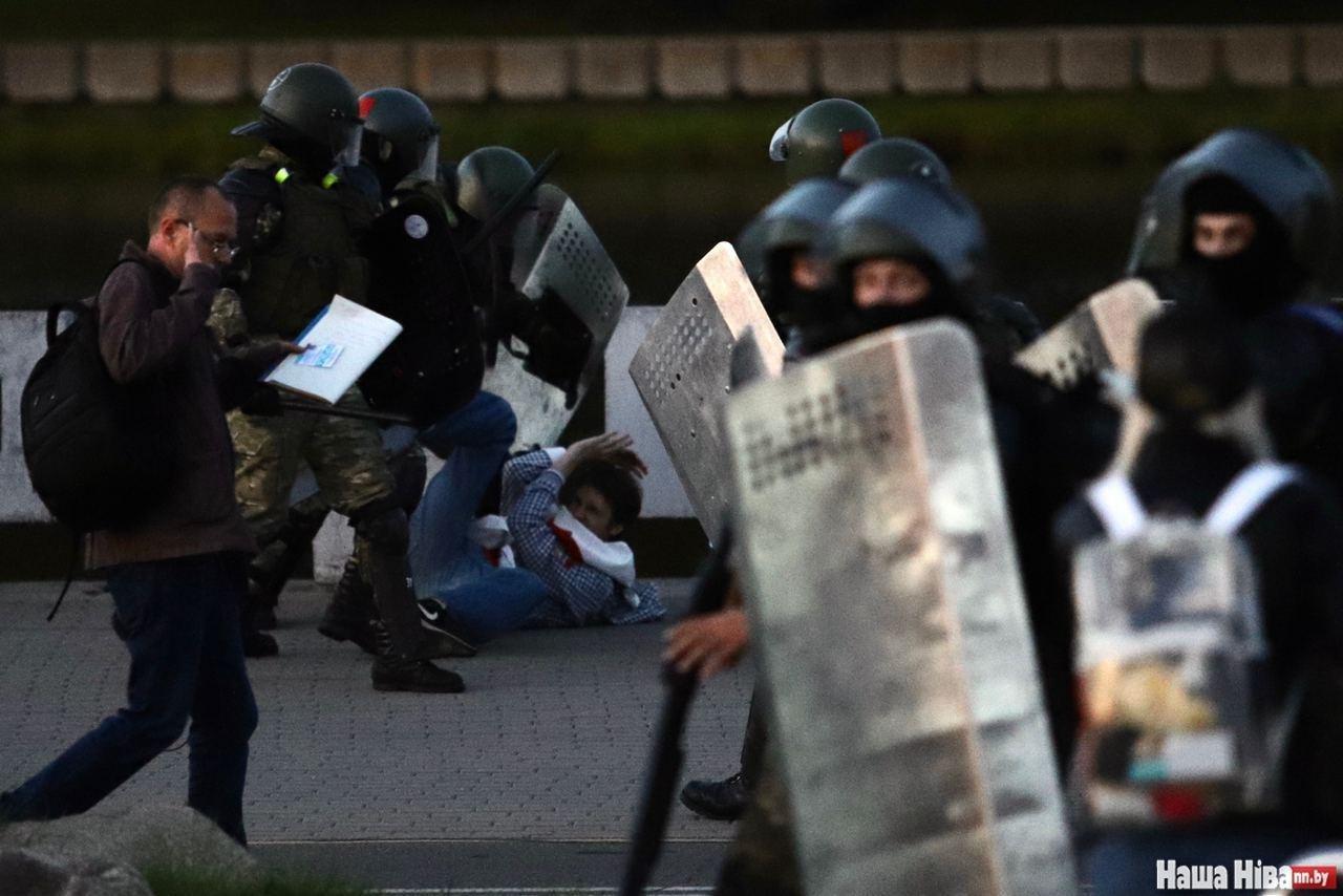 Возле стелы Минск - город герой при разгоне протестующих пострадала женщина. В каком состоянии она находится и насколько тяжелые повреждения она получила, пока неизвестно.