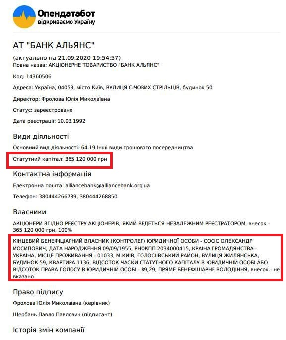 Статутный капитал акционерного общества «Банк Альянс» составляет более 365 миллионов гривен, а конечным бенецифиаром является Сосис Александр Иосифович. Почти 350 судовых решений, куча недовольных отзывов клиентов и многое другое. Но давайте по порядку.