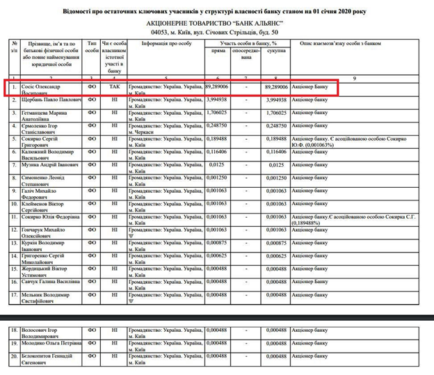Сокис Александр является главным акционером, у руках которого сосредоточено почти 90 % акций этого финансового учреждения.