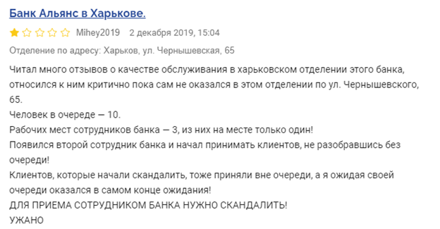 Еще в прошлом году при анализе банковской сферы Украины сайт Лига.Финансы сообщал, что банк «Альянс» хотя и вписывается в нормативы Национального банка Украины, но при этом не имеет большого запаса прочности по адекватности капитала… Кроме того, согласно официальной информации НБУ, не так давно была ликвидирована группа Альянс банка… Так, сколько еще сможет продержаться банк "Альянс" на плаву? Растет количество недовольных клиентов, которые рассказывают о некомпетентности сотрудников… Неужели это начало конца???