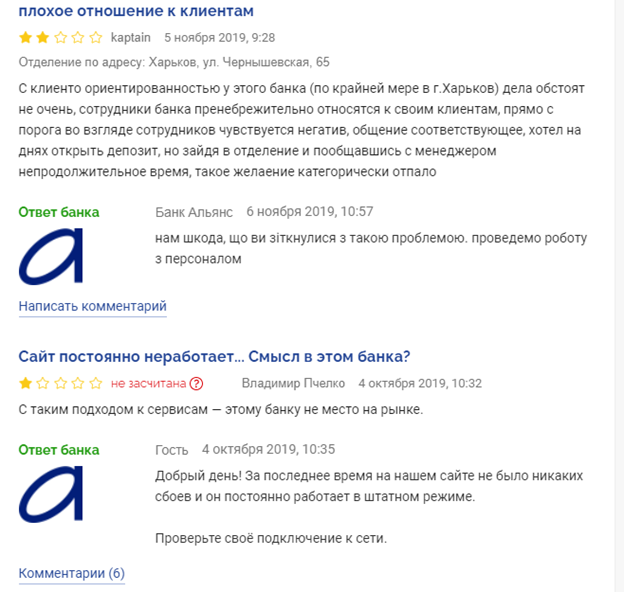 Отзывы клиентов банка Альянс: ничего личного, только бизнес
