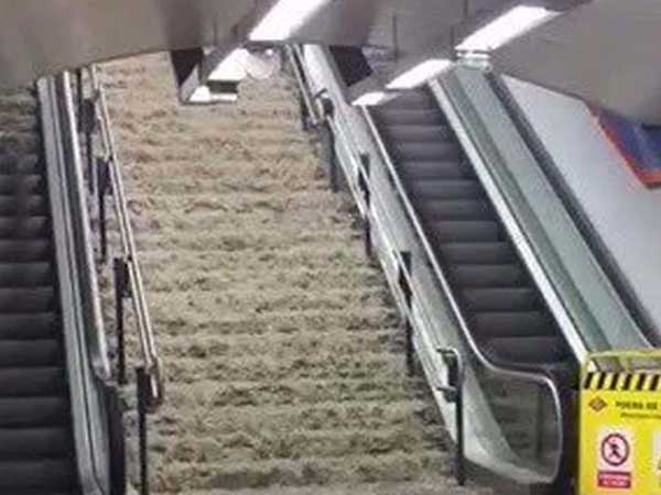 В результате длившегося полтора часа ливня пострадали улицы города, а также метрополитен, работа которого была нарушена.