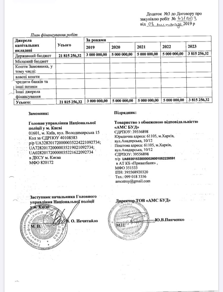 Натомість, комерсанти та ГУНП Києва уклали додаткові угоди та внесли зміни до початкового договору. Згідно із ними, виділення коштів держскарбниці на ремонт будівлі ІТТ на Косогірному провулку має відбуватися протягом наступних п’яти років.