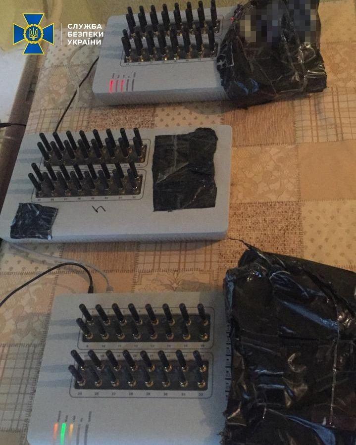 Під час проведення обшуків у Києві та Донецькій області правоохоронці виявили і вилучили комп’ютерну техніку зі встановленим спеціалізованим програмним забезпеченням, телекомунікаційне обладнання. Зокрема, 4 GSM-шлюзи ємністю 32 канали кожен, 4 сім-банки ємністю 128 і 32 канали та 6 VoIP-шлюзів ємністю 32 канали”.