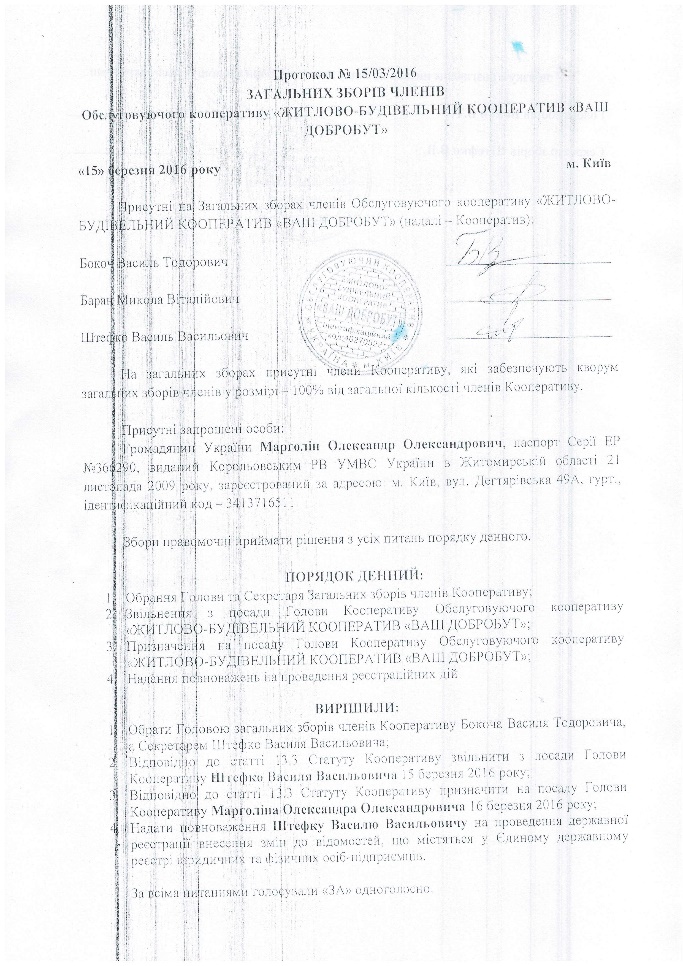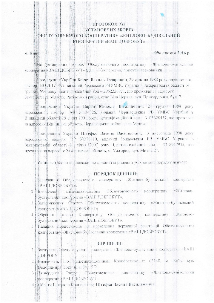 Далее в 2016 году был основан сам кооператив «Ваш добробут», пайщиками (ассоциированными членами без права голоса) стали обычные люди, а вот учредителями, членами правления и «инвесторами» - люди из окружения Василия Троцько и Василия Радь.