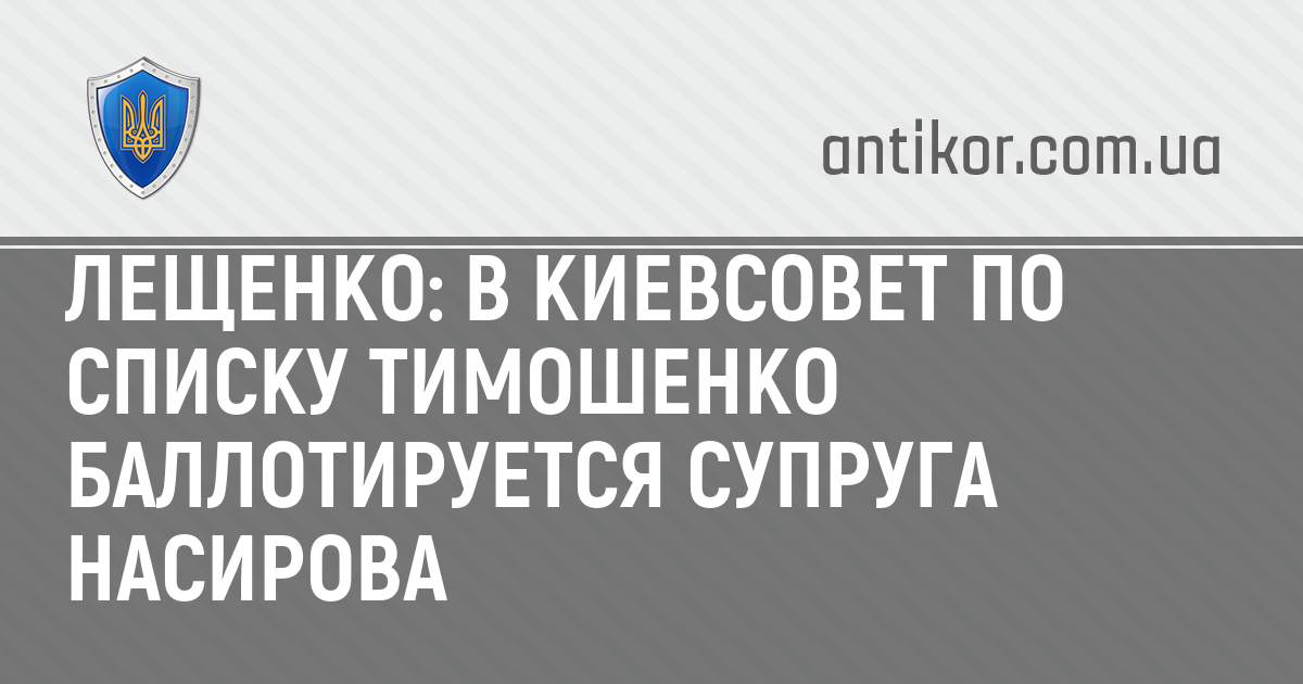 Лещенко: В Киевсовет по списку Тимошенко баллотируется супруга Насирова