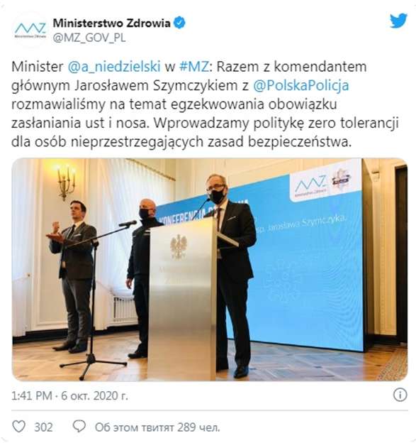 Министр здравоохранения Польши Адам Недзельский заявил, что в стране будет введена политика «нулевой толерантности» относительно невыполнения карантина.