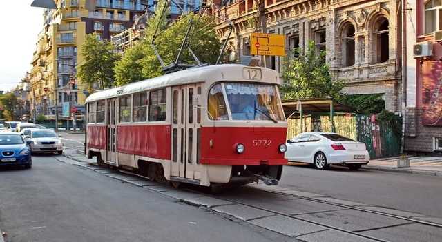 В Киеве школьники в возрасте около 10-12 лет проехались на трамвае, прицепившись к нему снаружи.