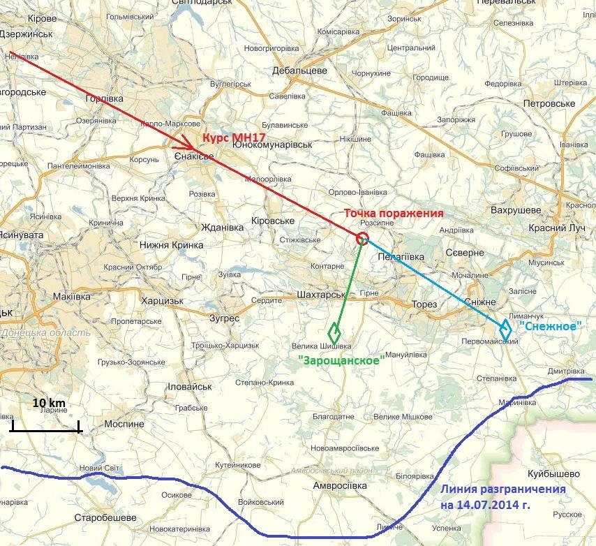 Еще раз повторим самое важное: и Снежное, и Зарощенское находились 17 июля на территории, контролируемой т.н. «сепаратистами». Соответственно, к вопросам уголовного порядка (определение виновных и меры наказания для них) все эти рассуждения об осколках и радиоотражении прямого отношения не имеют. Абстрактно рассуждая, «сепаратисты» могли пригнать «Бук» и в Зарощенское и оттуда пулять во всё, что летает. Абстрактно — да, а практически — нет. Почему? Потому, что именно в районе Снежного расположение ЗРК с большой досягаемостью по высоте имело ясный тактический смысл.