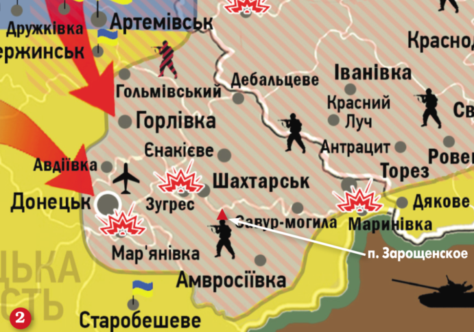Разумеется, публичные заявления военного командования не всегда бывают правдивыми, поэтому я без спора допускаю, что ФАКТИЧЕСКАЯ территория, контролируемая т.н. «сепаратистами», была в тот день еще БОЛЬШЕ, и, соответственно, Зарощенское находилось ЕЩЕ ГЛУБЖЕ, еще дальше от линии фронта, еще дальше от территории, контролируемой украинской армией. Дальше и глубже — но не наоборот.