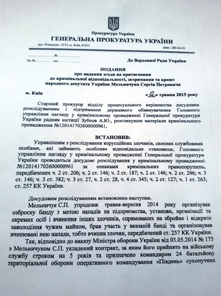 В нем приводятся факты противоправных действий, которые, по сведениям ГПУ, Мельничук совершал, будучи комбатом.