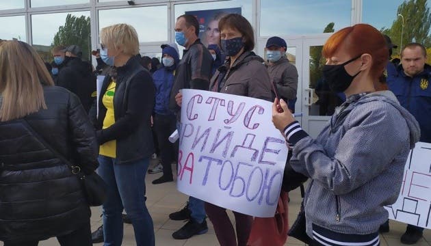 Проведению встречи помешали активисты Национального корпуса. Они заблокировали вход в холл и не пускали никого внутрь. Активисты также держали в руках плакаты с надписями «Стус придет за тобой», «Чемодан — вокзал — Россия» и «ОПЗЖ = смерть». На месте дежурили сотрудники полиции и Нацгвардии.