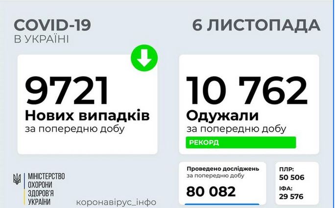 С пятницы, 6 ноября, когда впервые за долгое время количество украинцев, поборовших коронавирусную инфекцию, превысило число заболевших (10 762 против 9721), в Минздраве изменили вид инфографики, добавив в нее немного позитива.