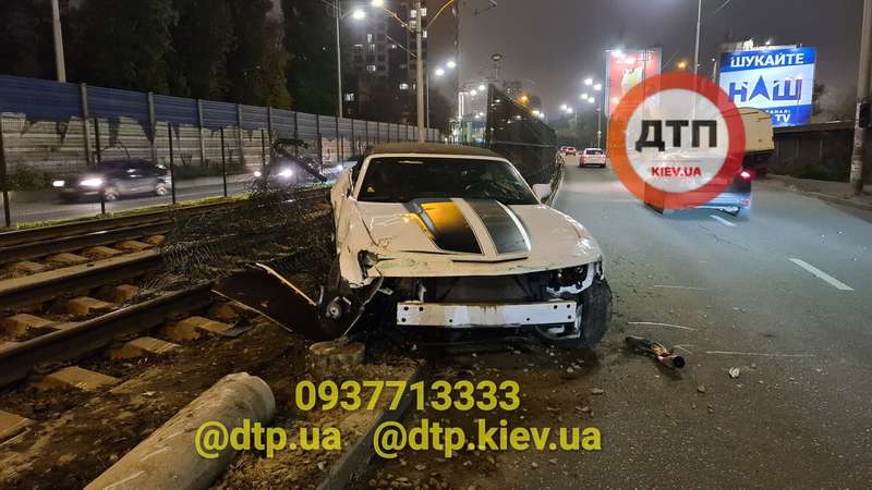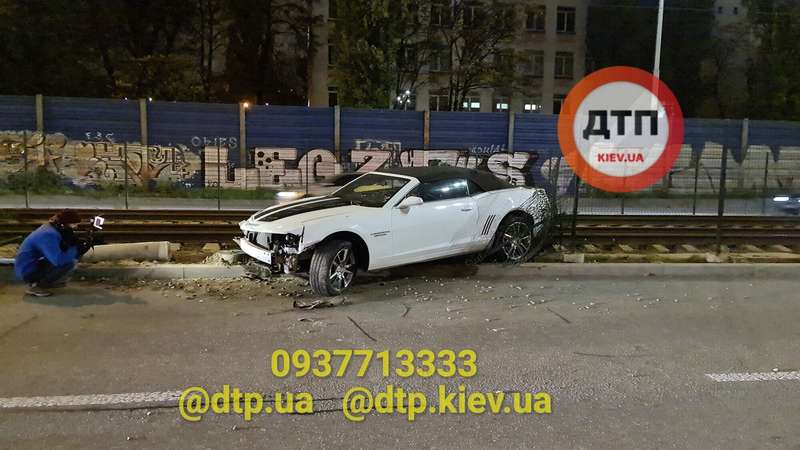 О происшествии сообщил в Facebook "Киев оперативный". Вечером 16 ноября на улице Борщаговской водитель Chevrolet Camaro вылетел с дороги, сбил ограду и оказался на трамвайных путях.