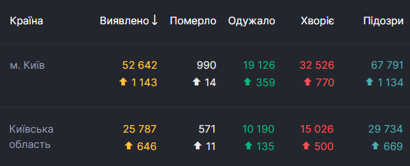 По состоянию на 17 ноября в городе насчитывается 52 642 случая заболевания. Такую статистику предоставили сайт СНБО, а также мэр Виталий Кличко в своем Telegram-канале.