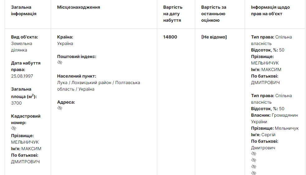 Дабы не утомлять читателя просмотром декларации, мы просто перечислим. Итак, Максим Дмитриевич и члены его семьи владеют следующим недвижимым имуществом. Есть немного земли: 2 999 кв.м. в поселке Гатное под Киевом, 7 400 кв.м. в селе Лука Лохвицкого района на Полтавщине, 2 790 кв.м. в Калиновке Броварского района, 832 кв.м. на Петропавловской Борщаговке (фактически Киев); жилой дом площадью 514,7 вк.м. в Гатном, еще один дом на 90 метров в селе Лука, две квартиры – 80 и 161 метр в Киеве, гараж в столице, дом в 356 кв.м на Петропавловской Борщаговке.