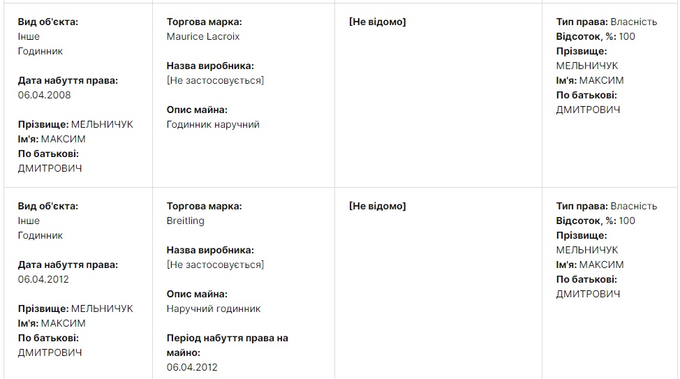 И хотя цену этих часов Мельничук не указывает, но есть ГУГЛ. Цены на Maurice Lacroix варьируются в диапазоне от 13 000-245 000 гривен. На Breitling – от 71 000 до 912 000 гривен. Breguet, соответственно, от 180 000 гривен и практически до бесконечности.