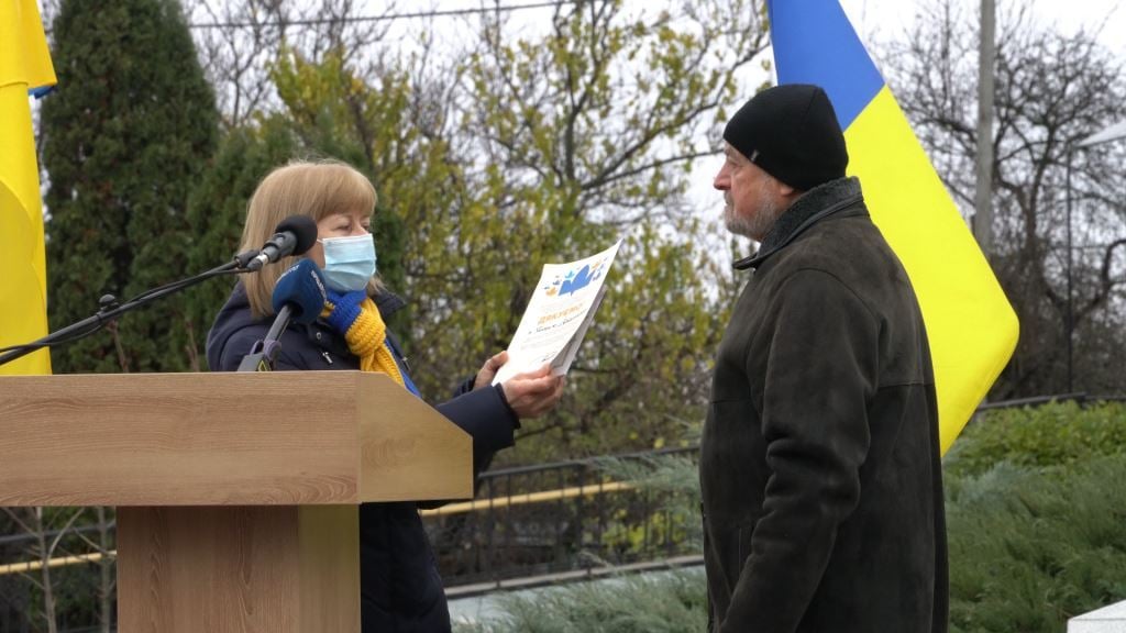 “Во время мероприятия памятный знак был освящен священником города, память погибших защитников Украины, участников революции Достоинства почтили минутой молчания”, – сказано в сообщении.