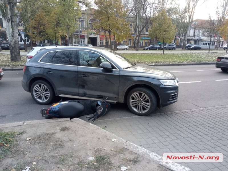 Днем в четверг, 26 ноября, на проспекте Центральном в Николаеве столкнулись мопед и автомобиль Audi.