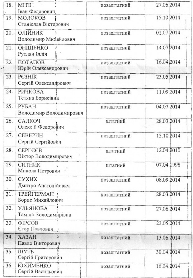 | 36 | ЮХИМЕНКО Сергій Васильович | внезаштатный | 16.04.2014 |