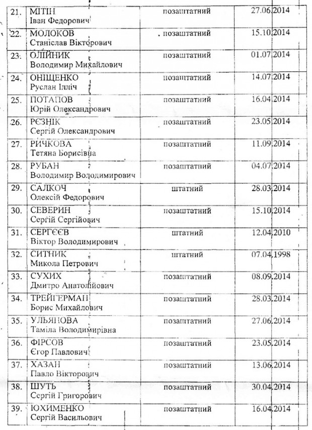 | 39 | ЮХИМЕНКО Сергій Васильович | позаштатний | 16.04.2014 |