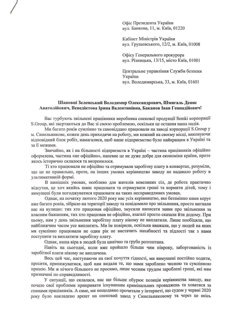 Среди подписантов, люди не имеющие никакого отношения к производителю “Семок”, большинство фамилий поставленных под обращением являются вымышленными. Ведь все что требовалось для получения денежных средств - предоставить любую ксерокопию паспорта (некоторые ксерокопии паспортов были выкачаны из открытых источников, например с сайта “Миротворец”) и подписать обращение, в котором кроме прочего фигурировало утверждение, что подписанты не участвовали в акциях протеста, которые проходили в поддержку производителя “Семки” во время рейдерской атаки на предприятие.