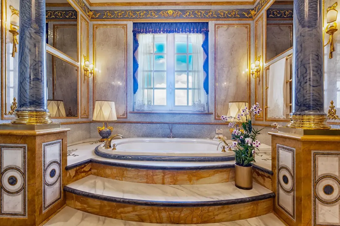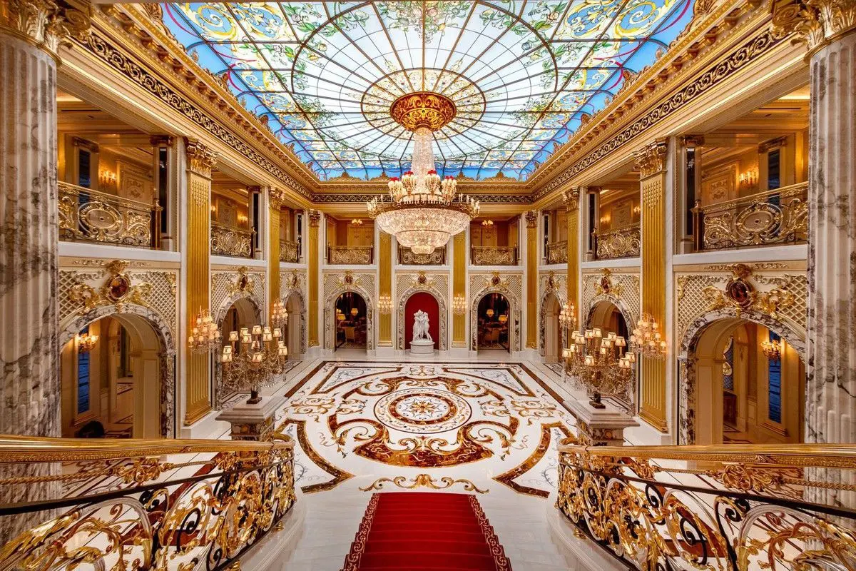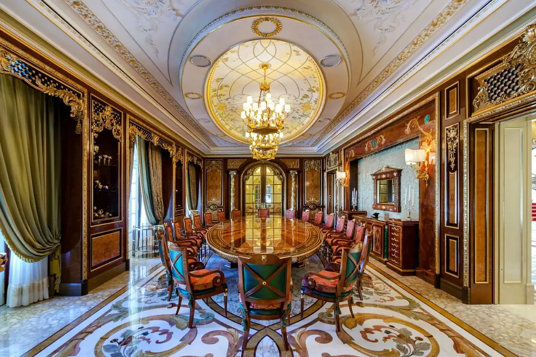 Особняк олигарха выполнен в золотом цвете, а в отделке использована лепнина из 14-каратного золота, мозаики из редких сортов мрамора и оникса. Дом окружает сад с фонтанами и скульптурами. На территории имеется собственный спа-салон, теннисный корт, бассейн, помещения для гостей и прислуги, а также автономная электростанция.