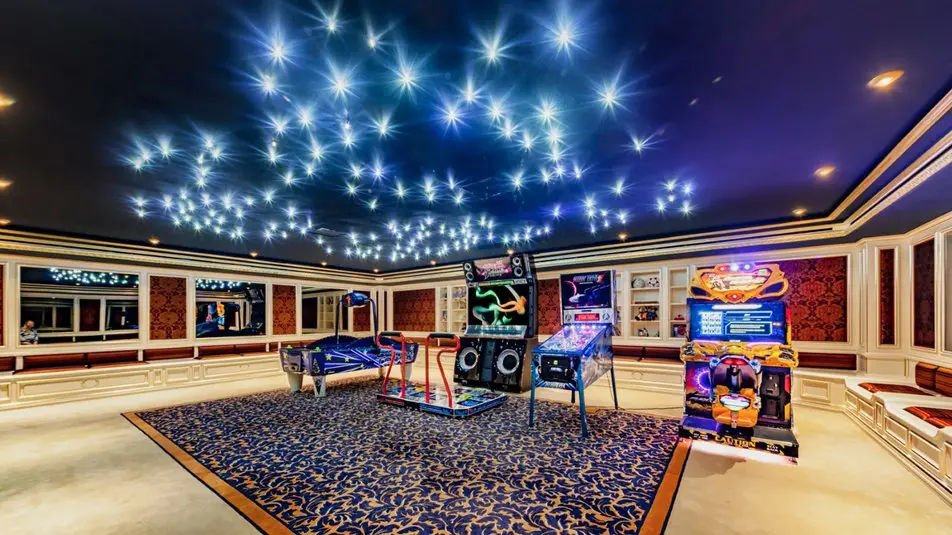 Общая площадь имений составляет 1,1 гектара, а площадь самого особняка 6500 квадратных метров. В самом доме есть 4 кинотеатра, 7 ванных комнат, винный погреб и бассейны.