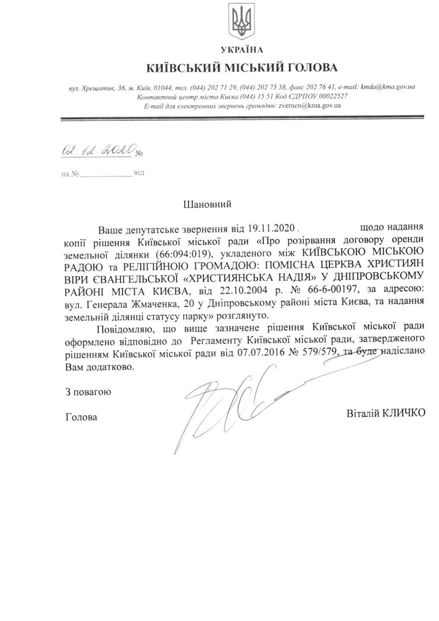 Более того, в ответе на запрос народного депутата мэр указал, что решение «оформлено соответственно регламента», но предоставить его отказался, написав, что «вышлют дополнительно».