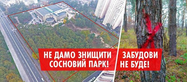 Строительство пытаются начать на участке, который арендовала религиозная община под обслуживание и реконструкцию своего здания, и застройщик уже проводил изыскания и начинал вырубать сосны, которых здесь около двух тысяч. Местные жители встали на защиту и с помощью городских депутатов появилось решение о расторжении договора аренды и присвоения участку статуса парка. За него Киевсовет проголосовал 24 сентября.