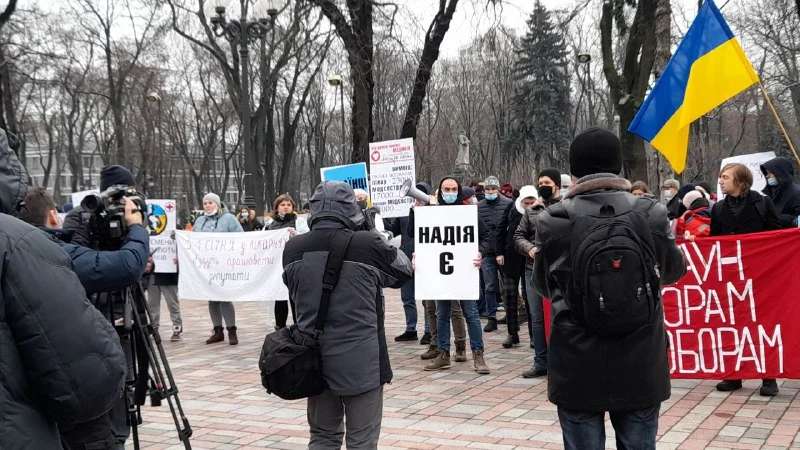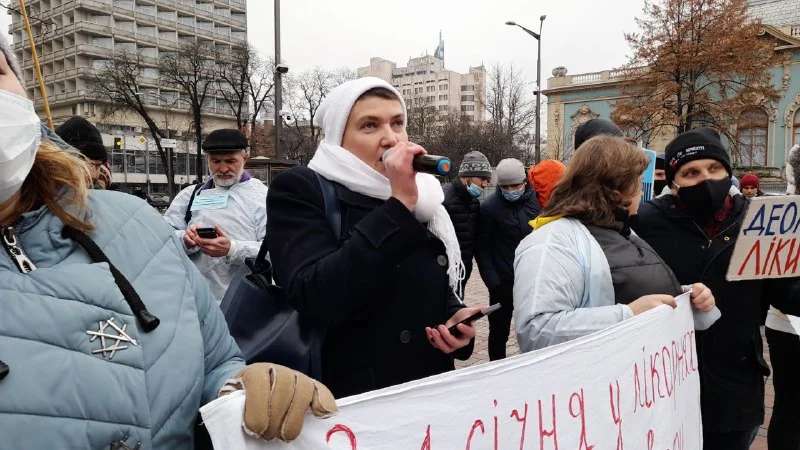 Среди митингующих корреспондент Vesti.ua также заметил экс-нардепа Надежду Савченко. Во время свое выступления Савченко обвинила бывшего президента Украины Петра Порошенко в том, что он воровал на войне, а действующего главу государства Владимира Зеленского в том, что он ворует на медицине.