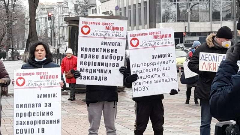 Участники акции требуют, в частности, повышение заработных плат, создания достойных условий работы и отмене ликвидации заведений психиатрической помощи, туберкулезных больниц и тому подобное.