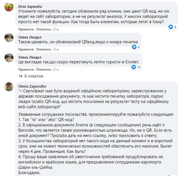 Если египетская сторона будет иметь сомнения в достоверности теста, уточнили в посольстве, она может потребовать проведения повторного теста по прилету. Если тест окажется положительным, то туристов изолируют до момента получения отрицательного результата.