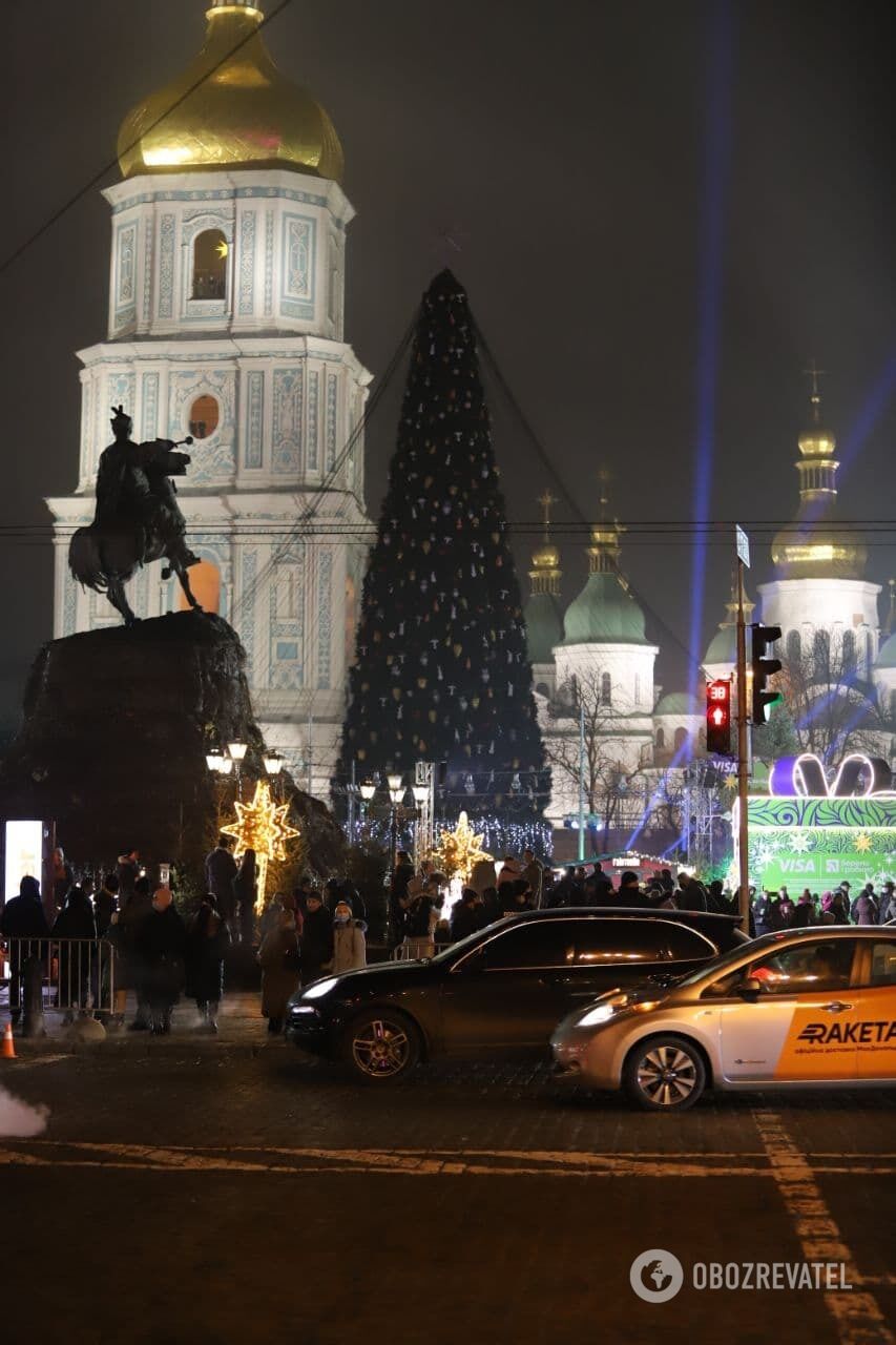 В Киеве 19 декабря сотни людей собрались на Софийской площади, чтобы посмотреть, как на День святого Николая засияет главная новогодняя елка страны.