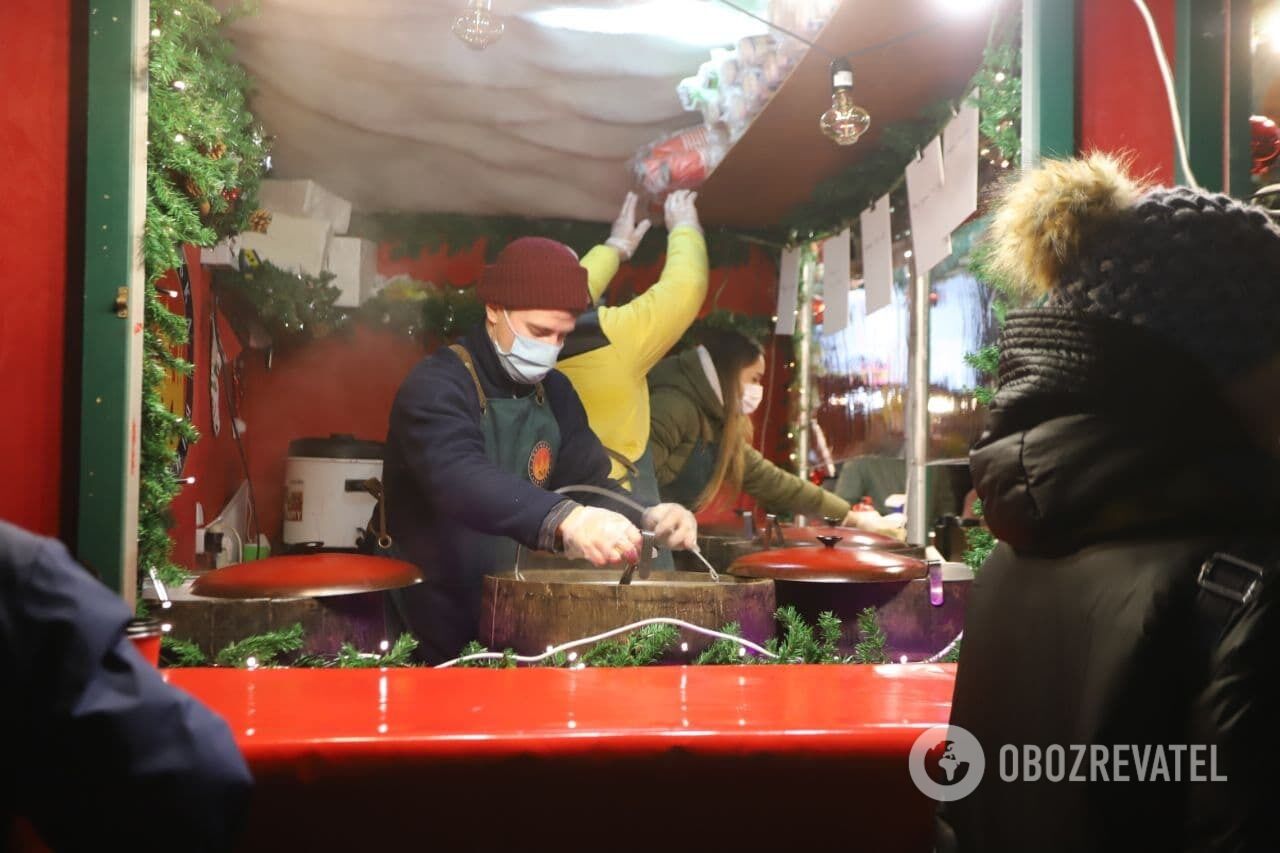 В отличие от прошлогодних торжеств, в этот раз на площади не разместили город с домиками, где можно приобрести различные вкусности и сувениры. Киевлянам и гостям столицы предлагают только попробовать глинтвейна.