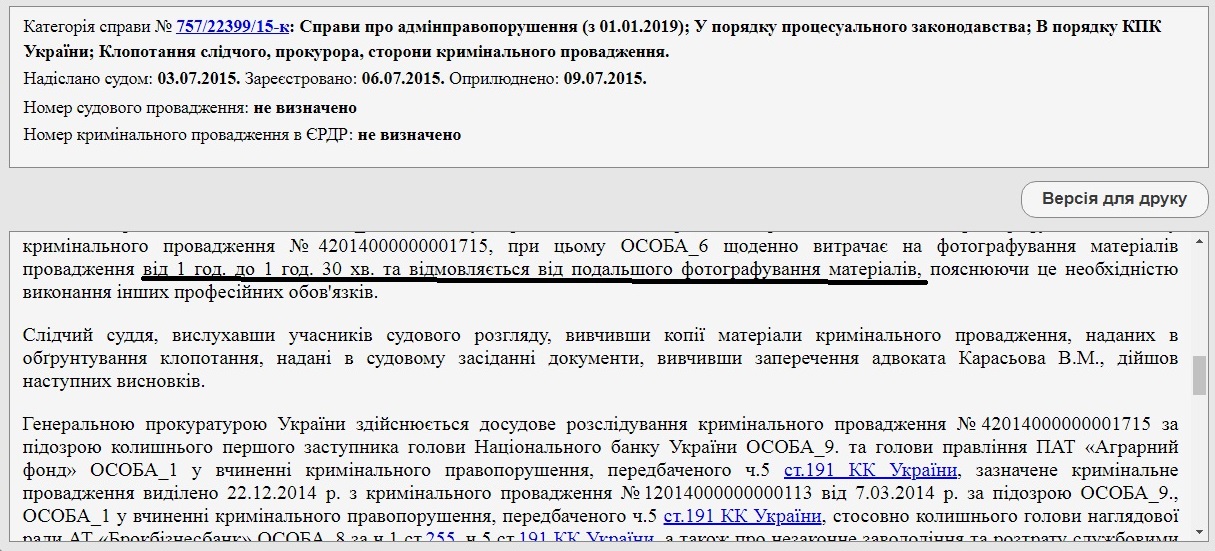 Между тем уголовное дело о краже двух миллиардов гривен успешно застряло в украинских судах. Фигуранты, и не последний из них - Приходько, использовали все мыслимые и немыслимые уловки, чтобы не дать рассмотреть дело по сути. Пользуясь несовершенством уголовно-процессуального кодекса, они всячески затягивали ознакомление с делом.