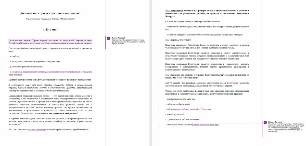 Еще Россия хочет провести в Беларуси приватизацию. В документе содержатся правки Никиты Логового, который наверное хочет занять в будущей пророссийской партии одну из руководящих позиций.