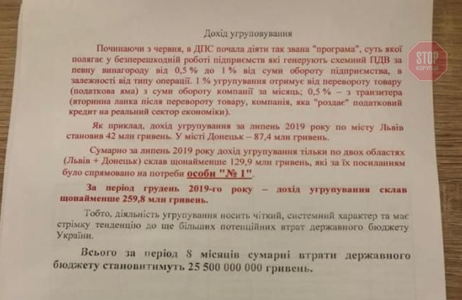Народный депутат Украины Гео Лерос еще в апреле на своем Facebook опубликовал документы, в которых шла речь о существовании преступной группы в ГНС Украины, специализирующейся на «схемах» с НДС. Как следовало из его публикации, в состав этой группы входит и. о. начальника ГНС в Донецкой области Ирина Долозина, выступая как «нижний уровень группировки», в которой лидером был назван екс-глава ГНС. Убытки Госбюджета, по данным Лероса, за 8 месяцев составили 25,5 миллиарда гривен. А прибыли группировки – 259,8 миллиона гривен. И это только за один месяц.