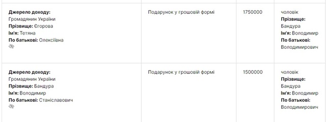 Подарки, доходы от предпринимательской деятельности, продажи имущества и корпоративные выплаты позволили семье худо-бедно свести баланс и оправдать дорогие приобретения. Формально все чисто, даже хватит немного на 2020 год – у Владимира Бандуры еще осталось «в заначке» полтора миллиона гривен наличности. Да и рассчитаться с долгами за позапрошлый, 2018 год, - тогда семья была довольно бедной, и в декларации Ирины Долозиной не было ни наличных, ни банковских счетов.