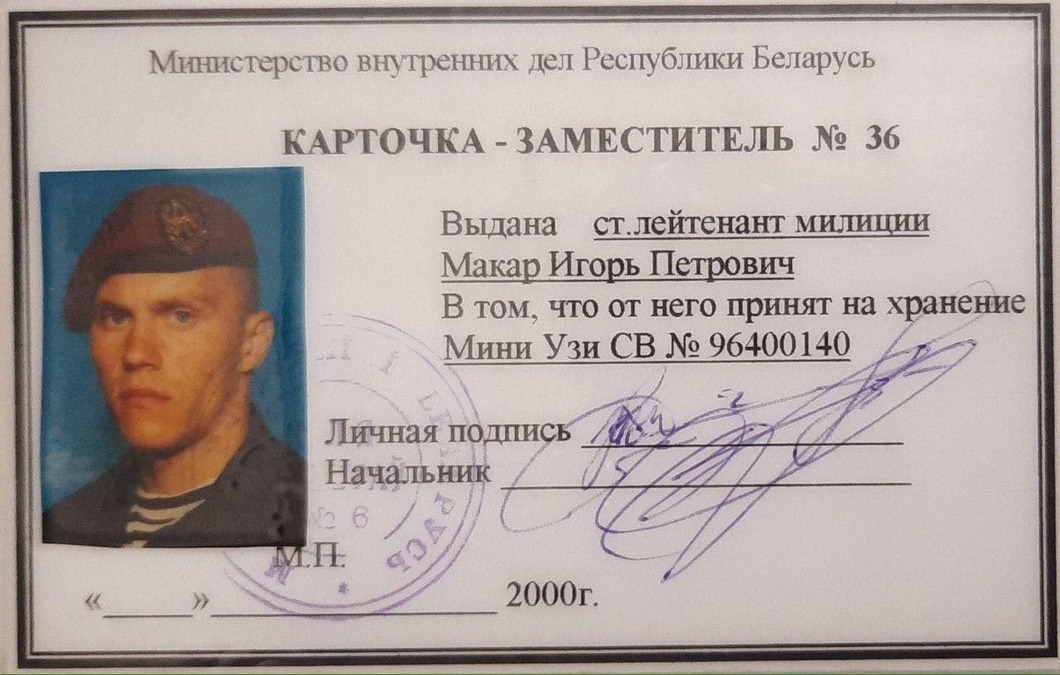 Карточка Игоря Макара, выданая МВД Беларуси. Из личного архива