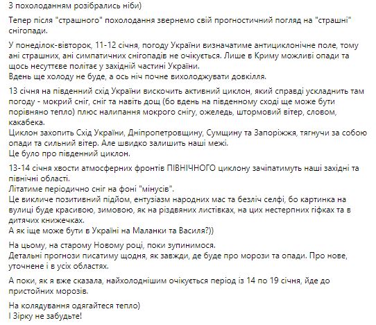Если в середине недели в Украине пройдут мокрые снегопады, местами со штормом и гололедом, то перед Крещением установится ясная и морозная погода.