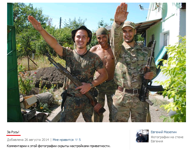 Сам он, приехал на Донбасс «косить укроп», и признается, что воюют только россияне, а местные ополченцы — говно, т.к «алкаши комерсы и нарки» . Сам их боится, поскольку в него стреляли «чаще ваши оолченцы нечаянно чем укропы».